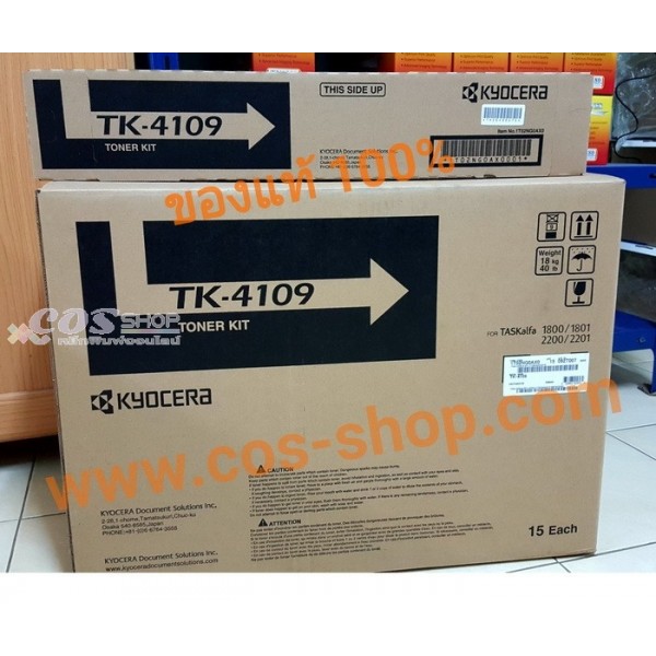 KYOCERA TK-4109 ตลับหมึกพิมพ์ และ หมึกถ่ายเอกสาร เคียวเซร่า Genuine Copy Laser Toner Cartridge For KYOCERA Printer and Copier Model FS-1800, FS-1800+, FS-3800, TASKalfa 1800, TASKalfa 1801, TASKalfa 2200, TASKalfa 2201 ตลับหมึกแท้ รับประกันศูนย์